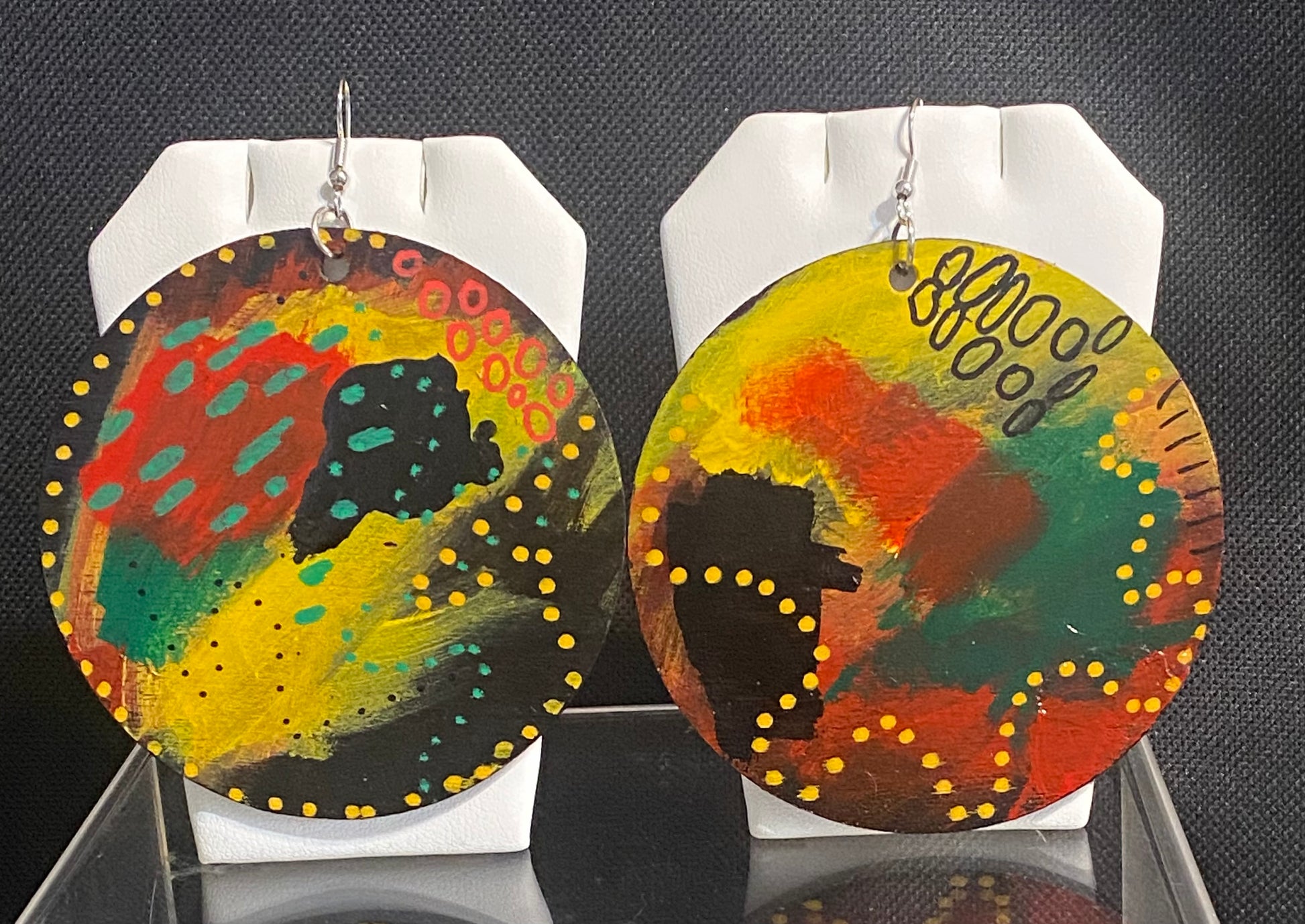 Each pair of these wooden earrings have been hand painted using high quality acrylic paint.