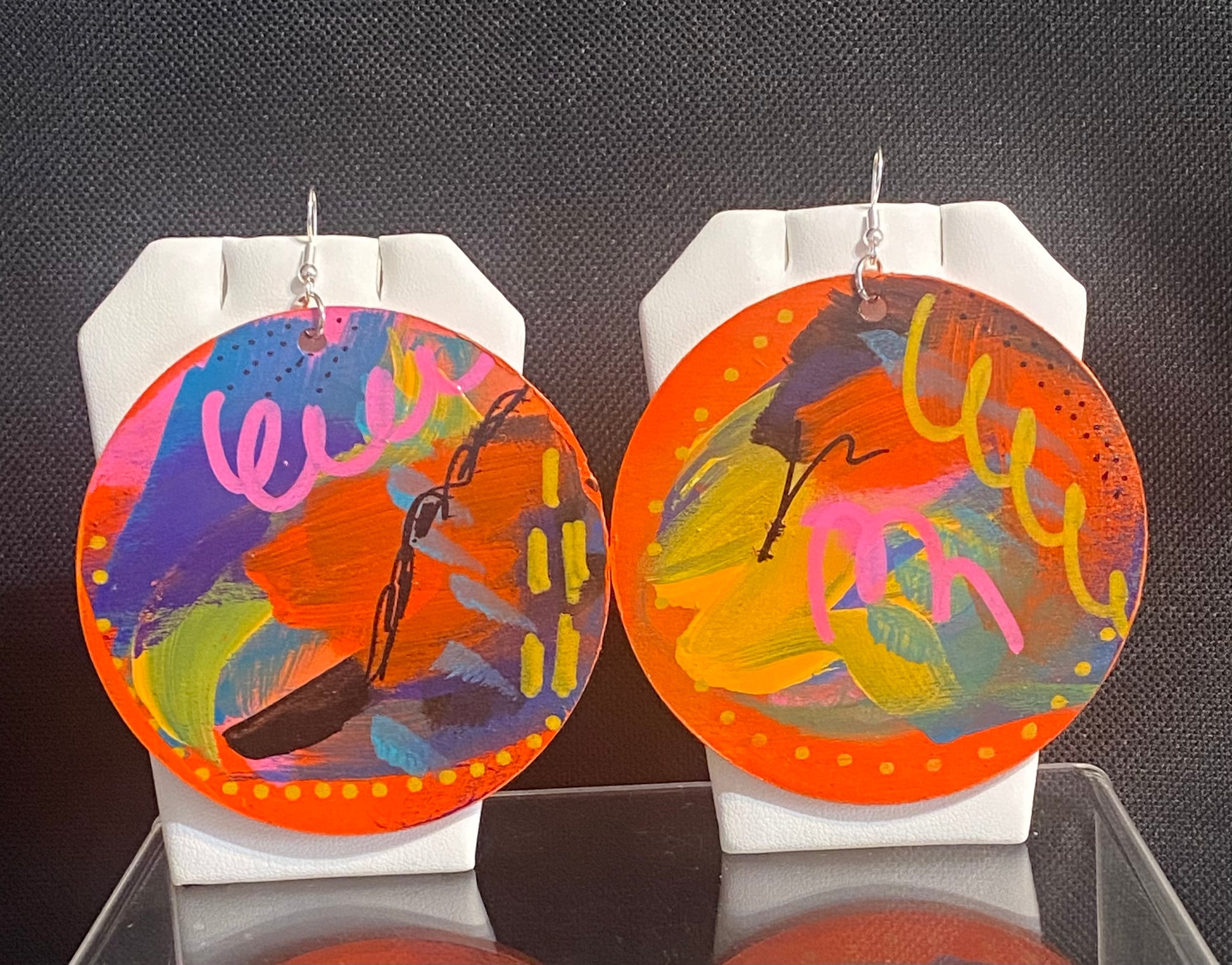 Each pair of these wooden earrings have been hand painted using high quality acrylic paint.