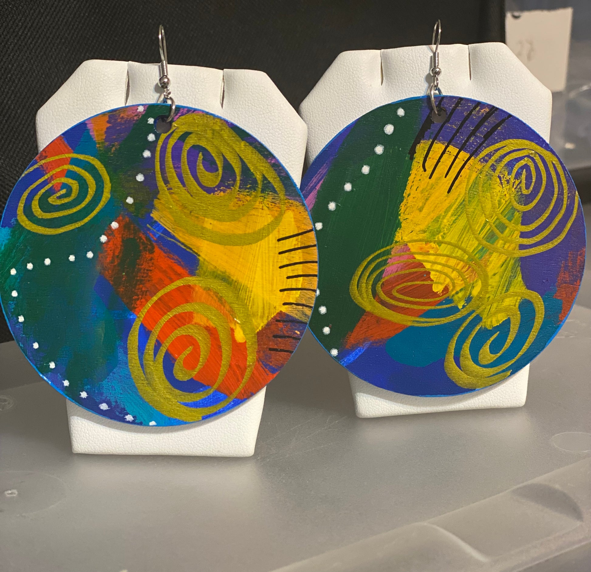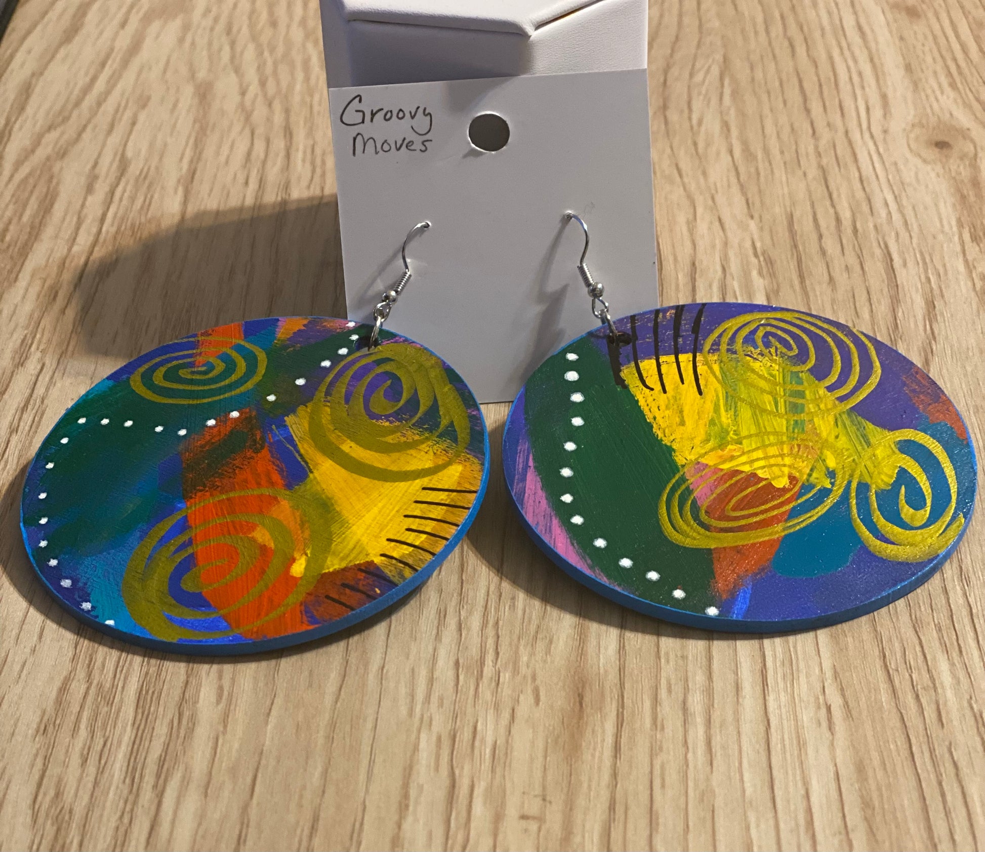 Each pair of these wooden earrings have been hand painted using high quality acrylic paint.