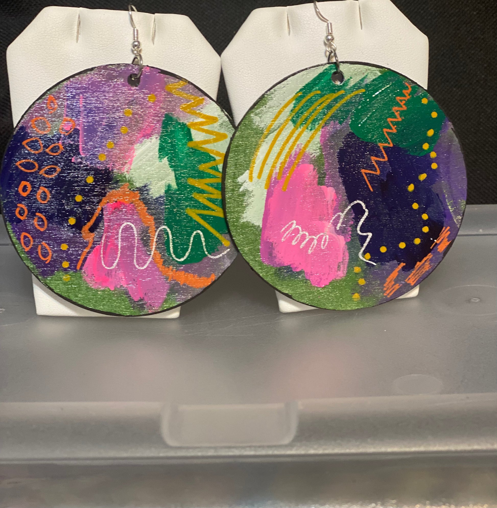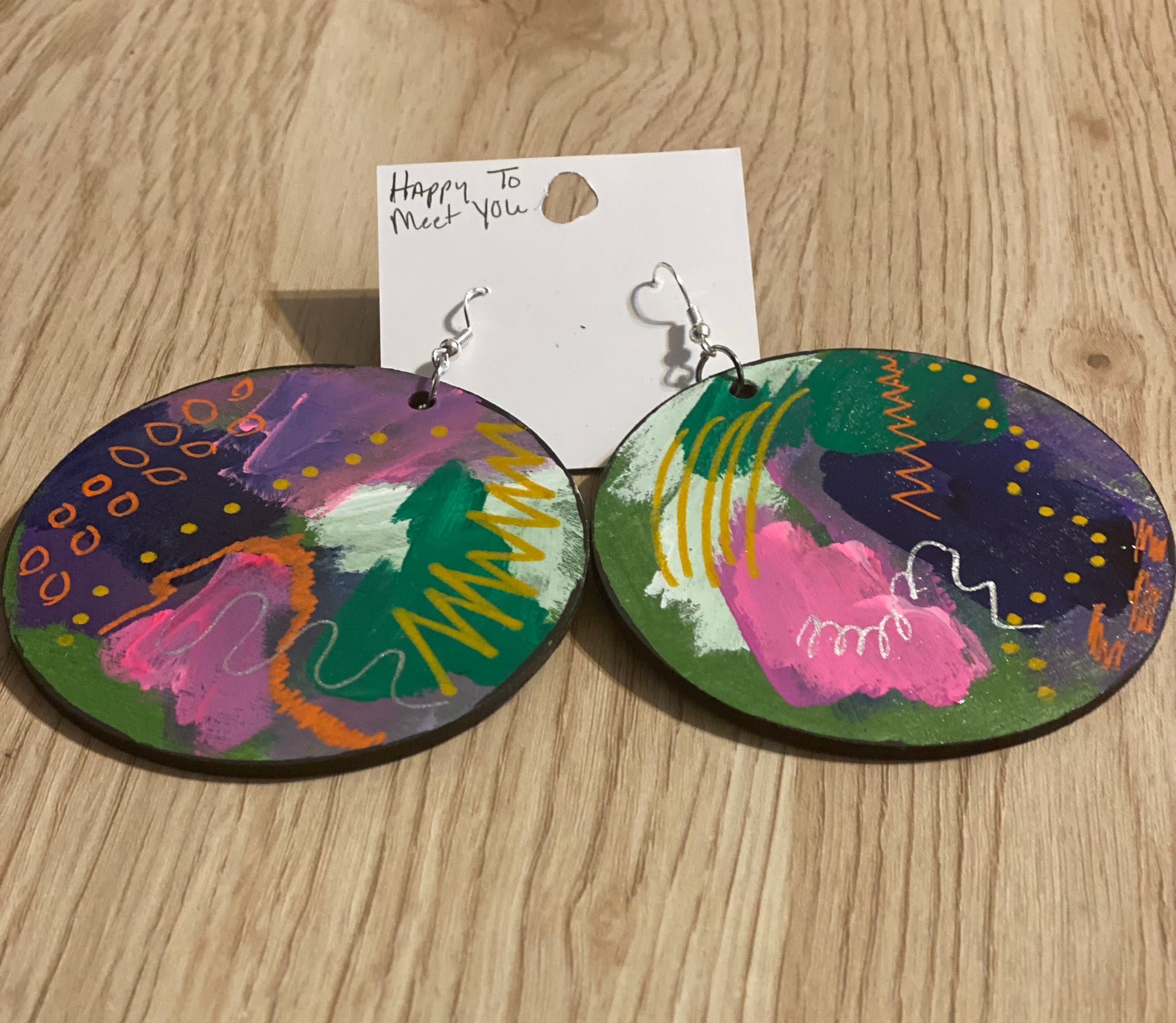 Each pair of these wooden earrings have been hand painted using high quality acrylic paint.