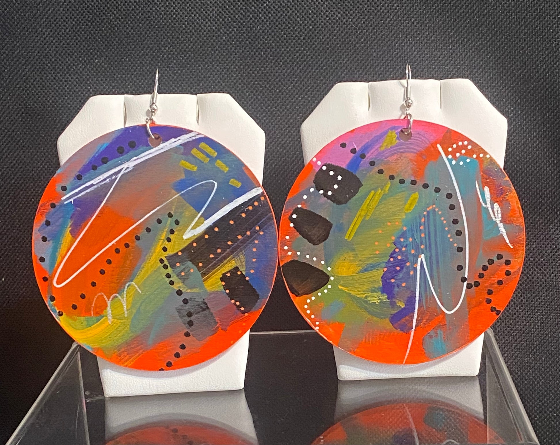 Each pair of these wooden earrings have been hand painted using high quality acrylic paint.